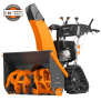 Это позволяет управлять снегоуборщиком одной рукой, и одновременно изменять направление и дальность выброса снега без остановки работы.